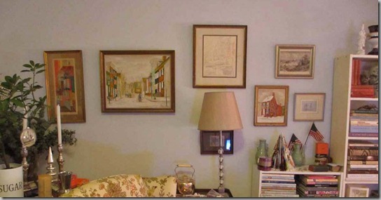 You can just see my father’s collection of red Baedekers’ Travel Guides in the left corner of this room. He had shelves built in on the wall opposite the fireplace for all of his books. At one point, he had more than 4,000 books! But that’s nowhere near the number that Johns Hopkins Professor Richard Macksey has in his house (top image). His floors had to be reinforced!