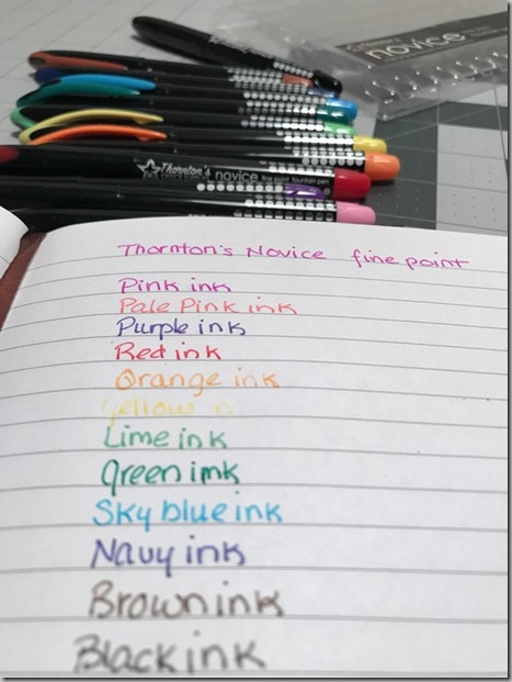 The first set I bought because I couldn’t resist the name: Platinum Preppy! The set came in seven colours of ink, which was a huge change from my childhood, black, blue-black or blue ink. They’re Japanese, as so many fun things are,and come in a fine point. The colours are great, except yellow, which you can barely see!